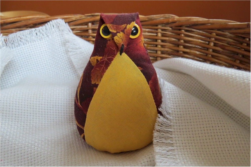 | These little owls were a huge hit with my family and friends when I gave them away for Christmas in 2013. The owls started out as a pin cushion project but then gained a life of their own. They have evolved over the years. I have made around 200 of these little guys and gals. I carry one in my pocketbook for that unexpected moment when you meet someone and know that an owl friend will be welcomed with a chuckle. |